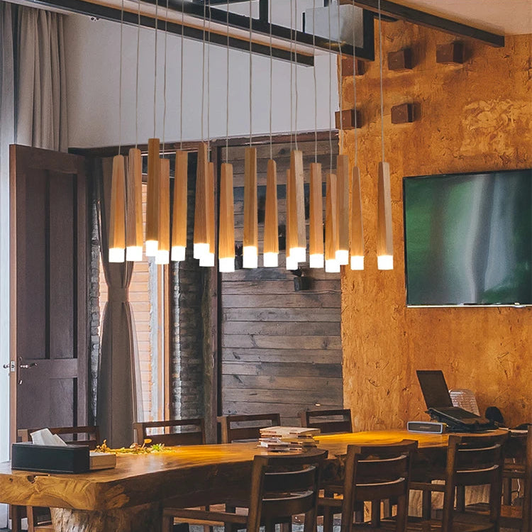 Subtile et chaleureuse, cette suspension en bois en forme de torche incarne à merveille le design scandinave minimaliste. Sa structure élancée en bois beige naturel diffuse une lumière LED douce, disponible en blanc chaud ou froid, idéale pour créer une atmosphère paisible et élégante.