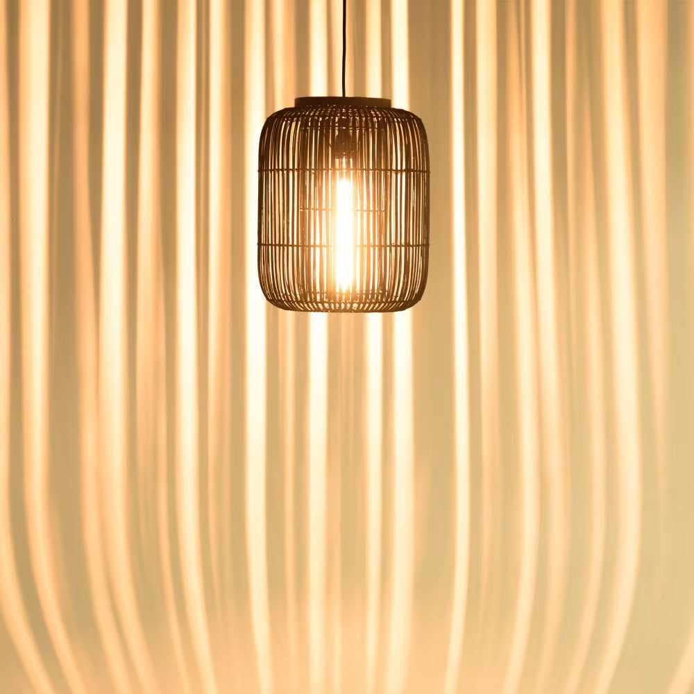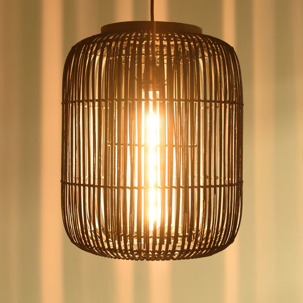 Naturelle et élégante, cette suspension cylindrique en rotin capture l’essence du style bohème sophistiqué. Son tressage fin et aérien, disponible en beige ou noir, révèle la beauté brute du matériau tout en diffusant une lumière douce et enveloppante.