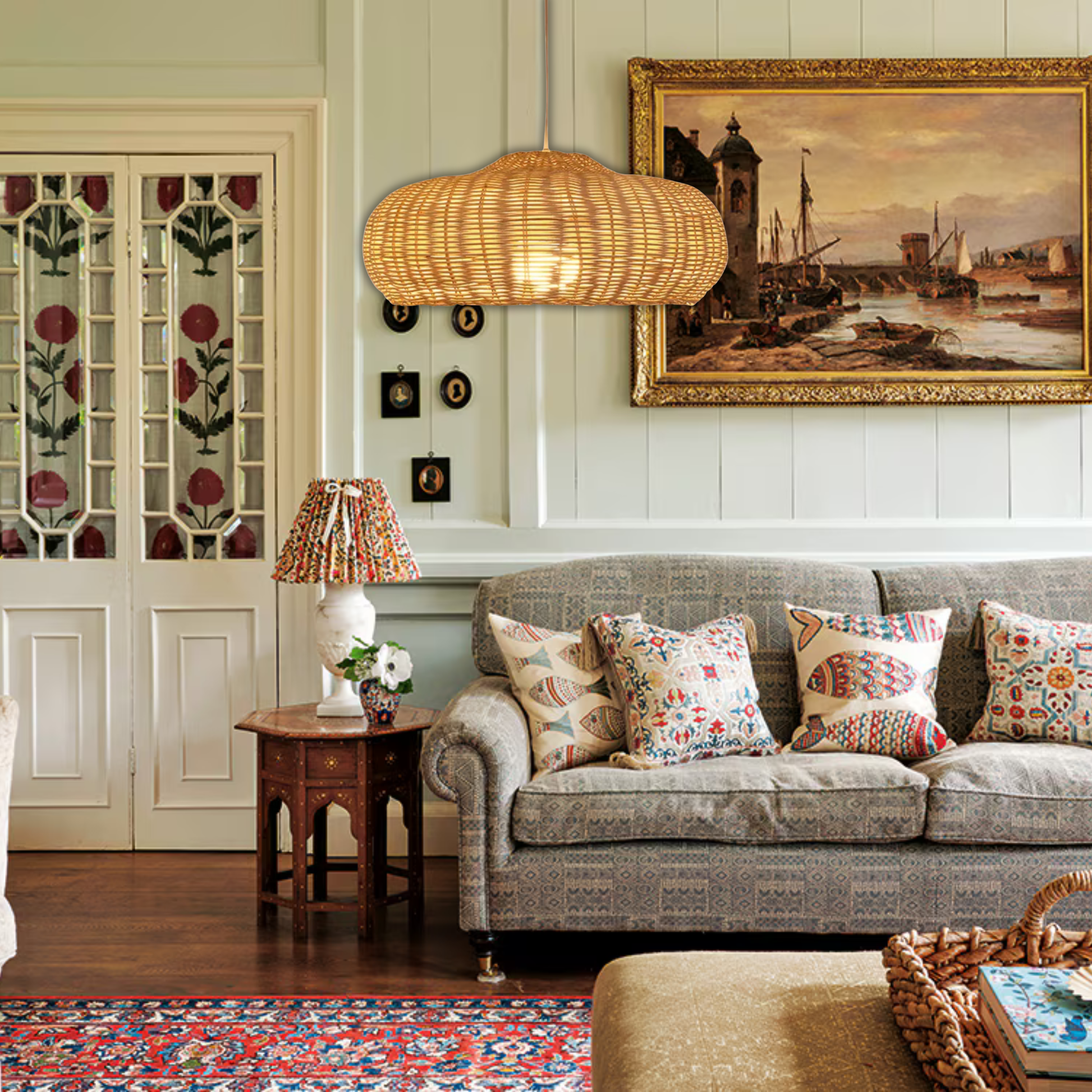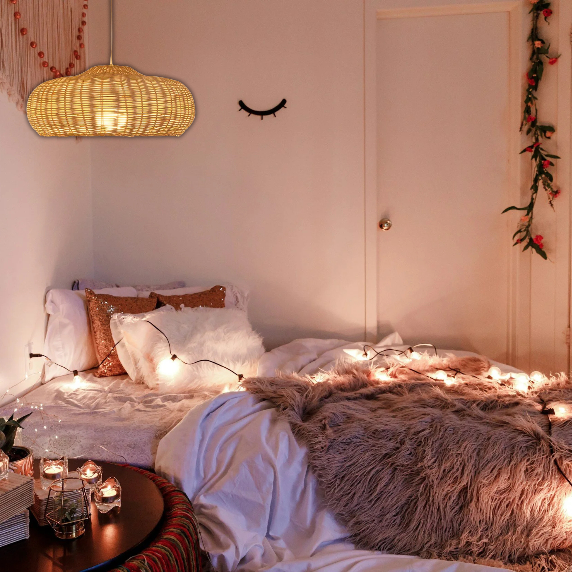 Avec son design champignon et son tressage en rotin naturel, cette suspension apporte une touche vintage et apaisante à votre intérieur. Ses lignes organiques et sa lumière douce créent une atmosphère chaleureuse, idéale pour habiller un salon, une cuisine ou une chambre avec élégance.