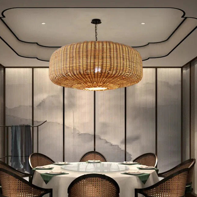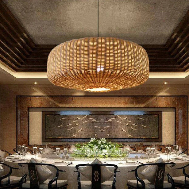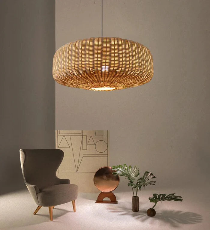 Suspension rotin tressé ovale moderne