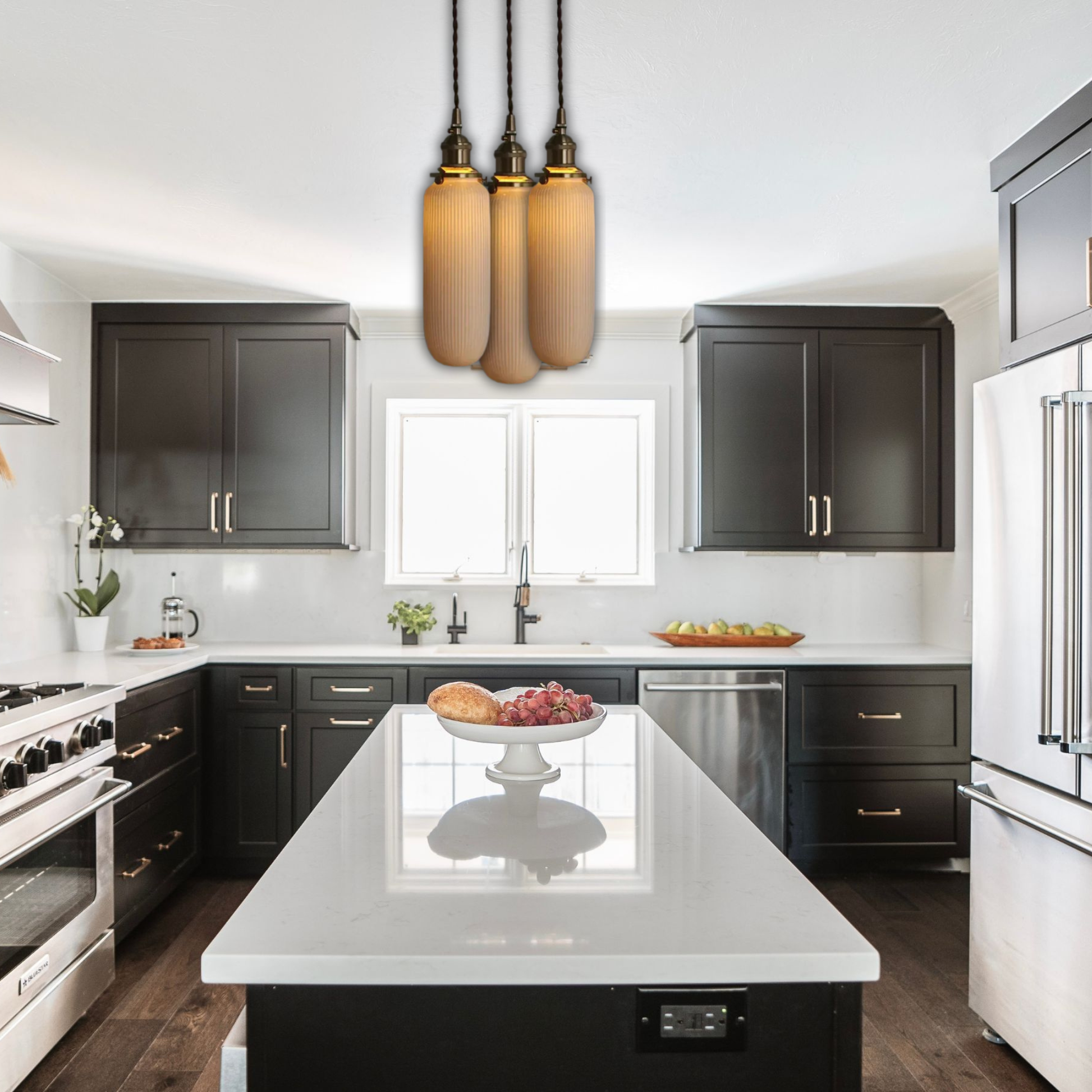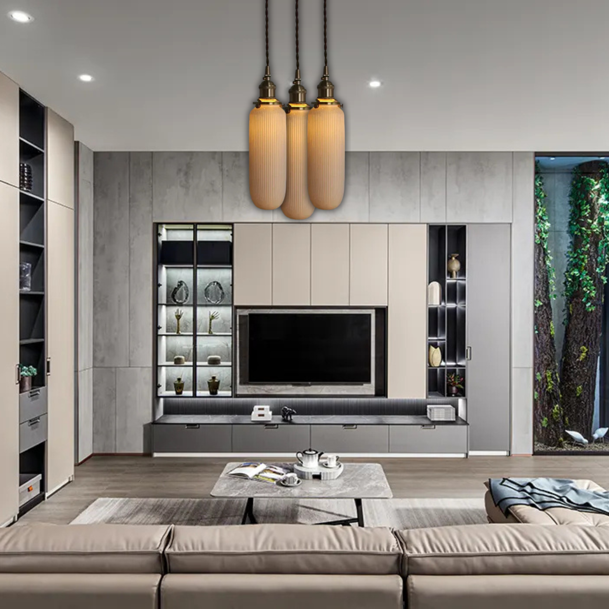 Apportez une note de raffinement rétro à votre décoration avec notre suspension céramique blanche rainurée et cuivre allongée vintage. Son design élancé et ses rainures délicatement sculptées captent la lumière avec subtilité, tandis que les finitions cuivrées viennent rehausser son allure sophistiquée. Véritable pièce décorative, elle s’intègre aussi bien dans un salon élégant que dans une cuisine au charme ancien.