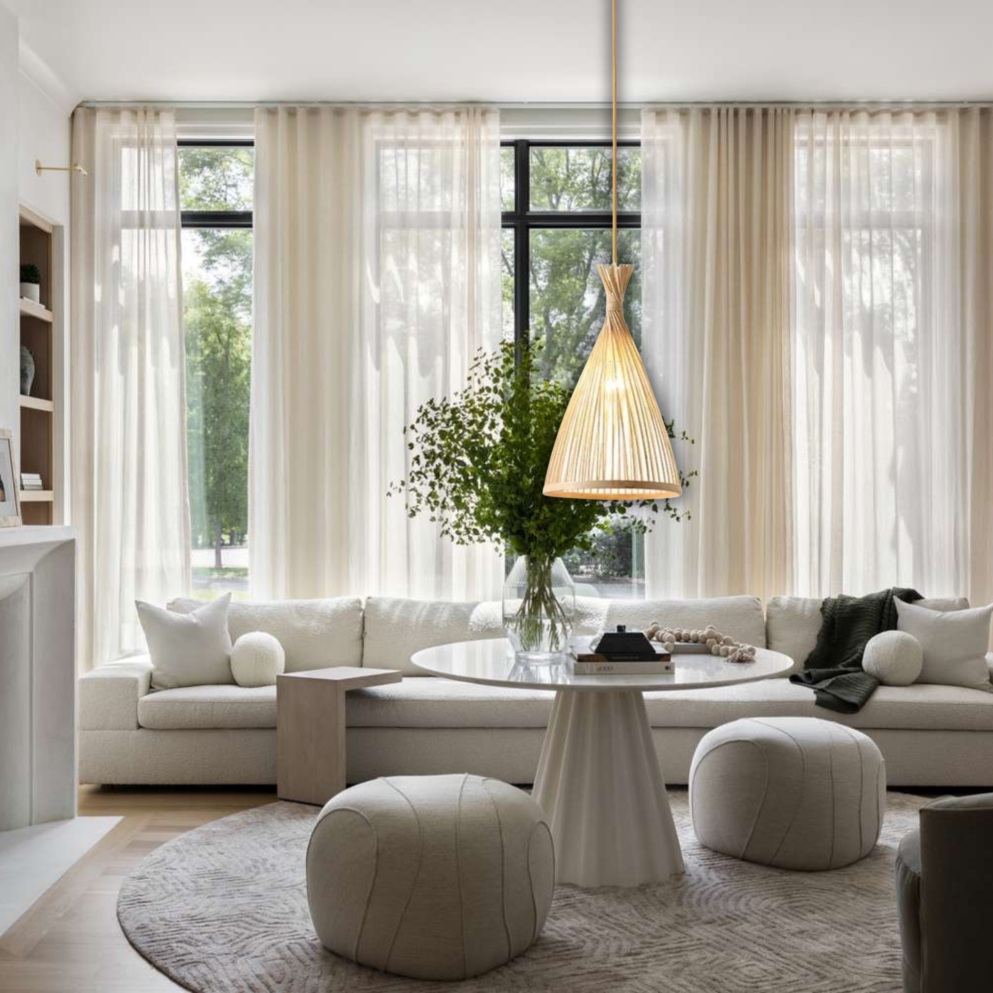 Apportez une touche naturelle et contemporaine à votre décoration avec cette suspension en rotin au design tipi, un luminaire à la fois moderne et intemporel. Son rotin beige élégant et sa structure équilibrée diffusent une lumière douce et homogène, idéale pour le salon, la cuisine ou la chambre.