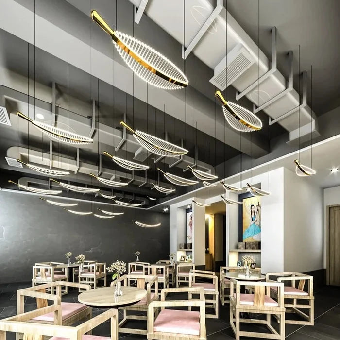 Apportez une note moderne et lumineuse à votre intérieur avec notre suspension plume transparente et dorée, un luminaire au design artistique et aérien. Confectionnée en acrylique, fer et aluminium, cette pièce marie la transparence élégante à des reflets dorés raffinés, créant un jeu de lumière subtil et chaleureux.