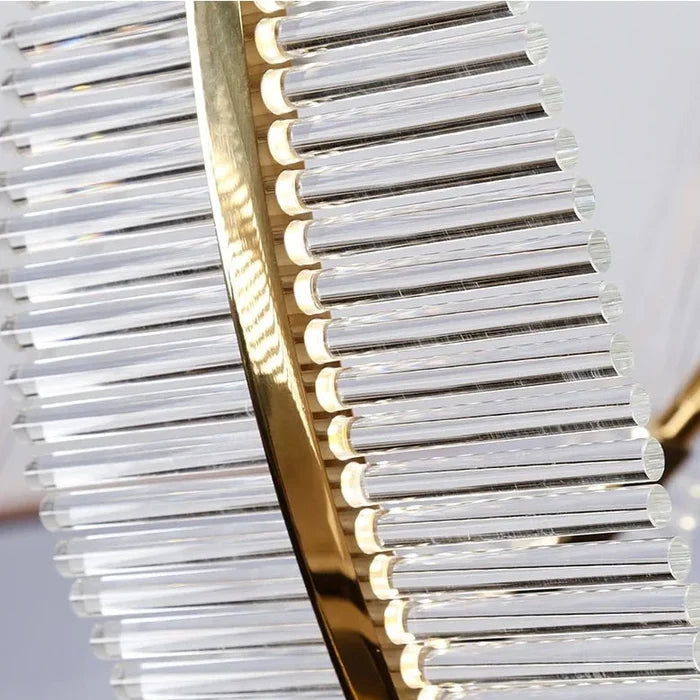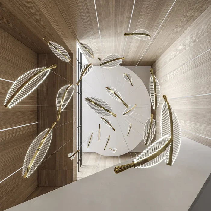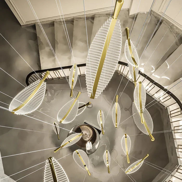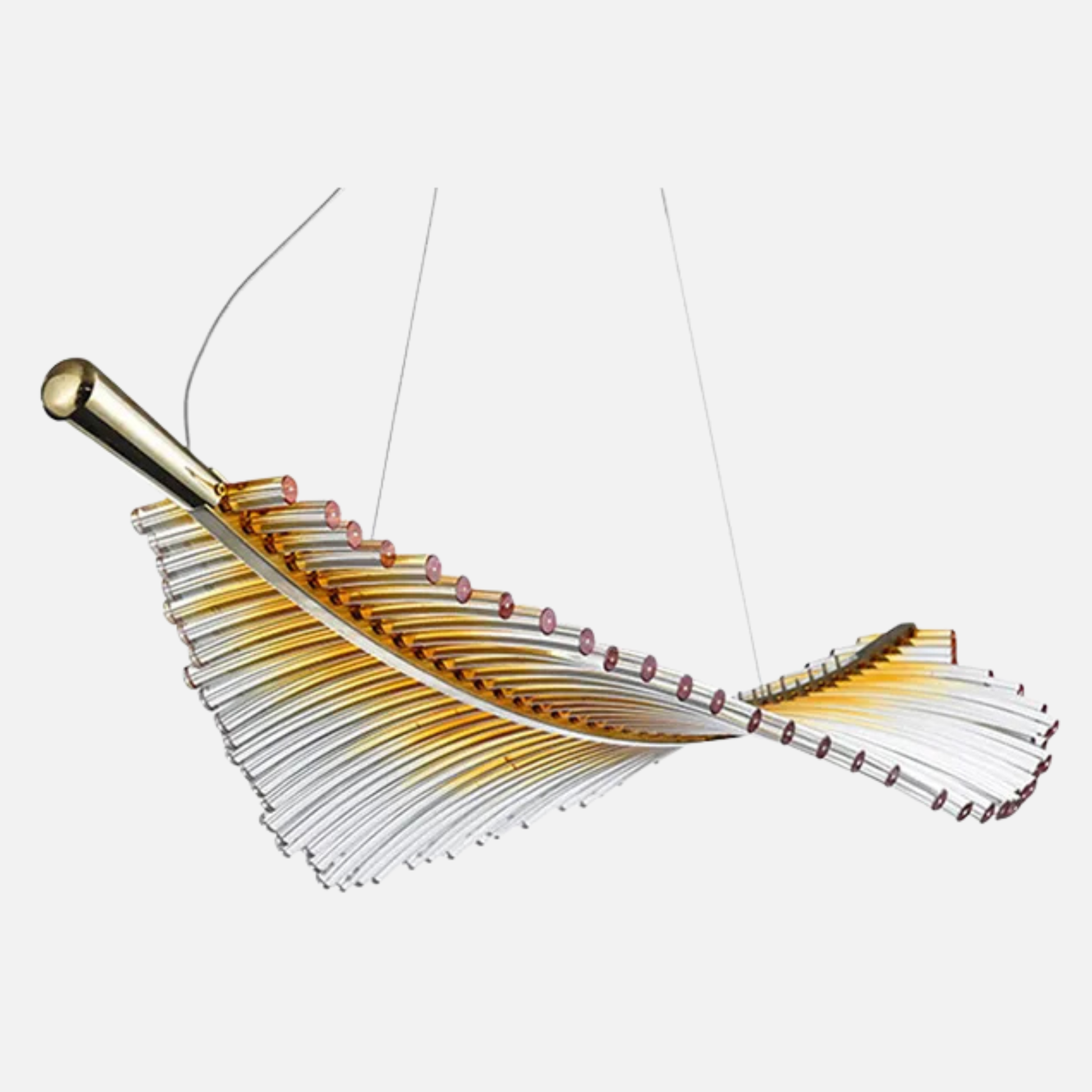 Suspension plume transparente et dorée design moderne