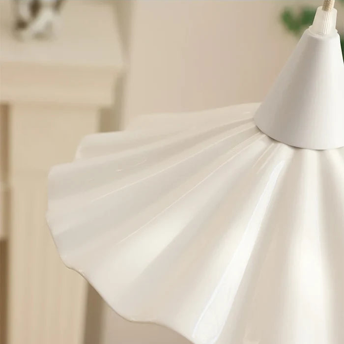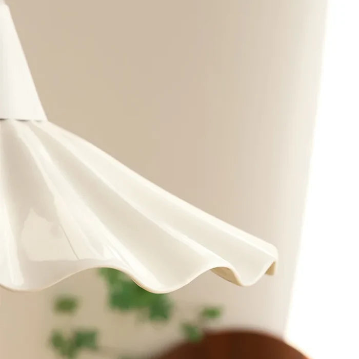 Suspension en céramique blanche ondulée vintage