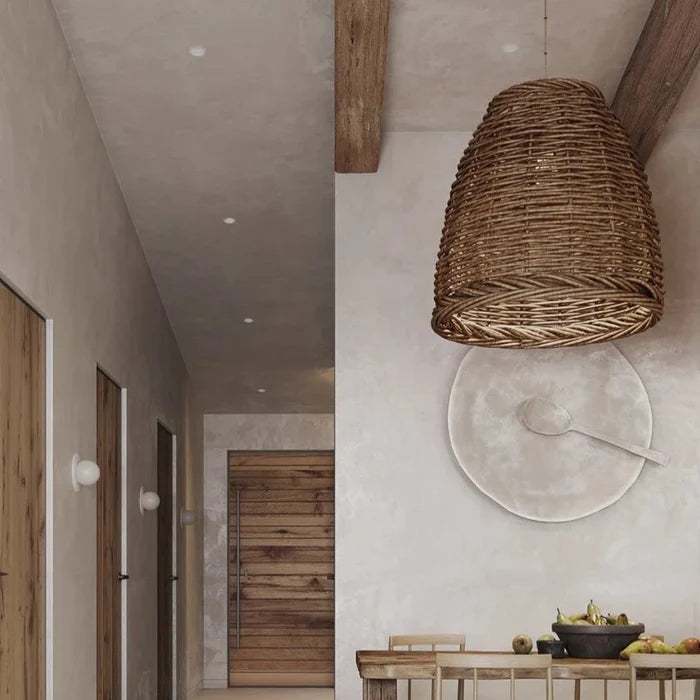 Apportez une atmosphère chaleureuse et naturelle à votre intérieur avec notre suspension en osier tressé en forme de cloche, une pièce qui incarne à merveille l’esprit bohème et artisanal. Sa texture tressée à la main et sa teinte marron naturelle créent un jeu de lumière doux et apaisant, idéal pour instaurer une ambiance conviviale et détendue.