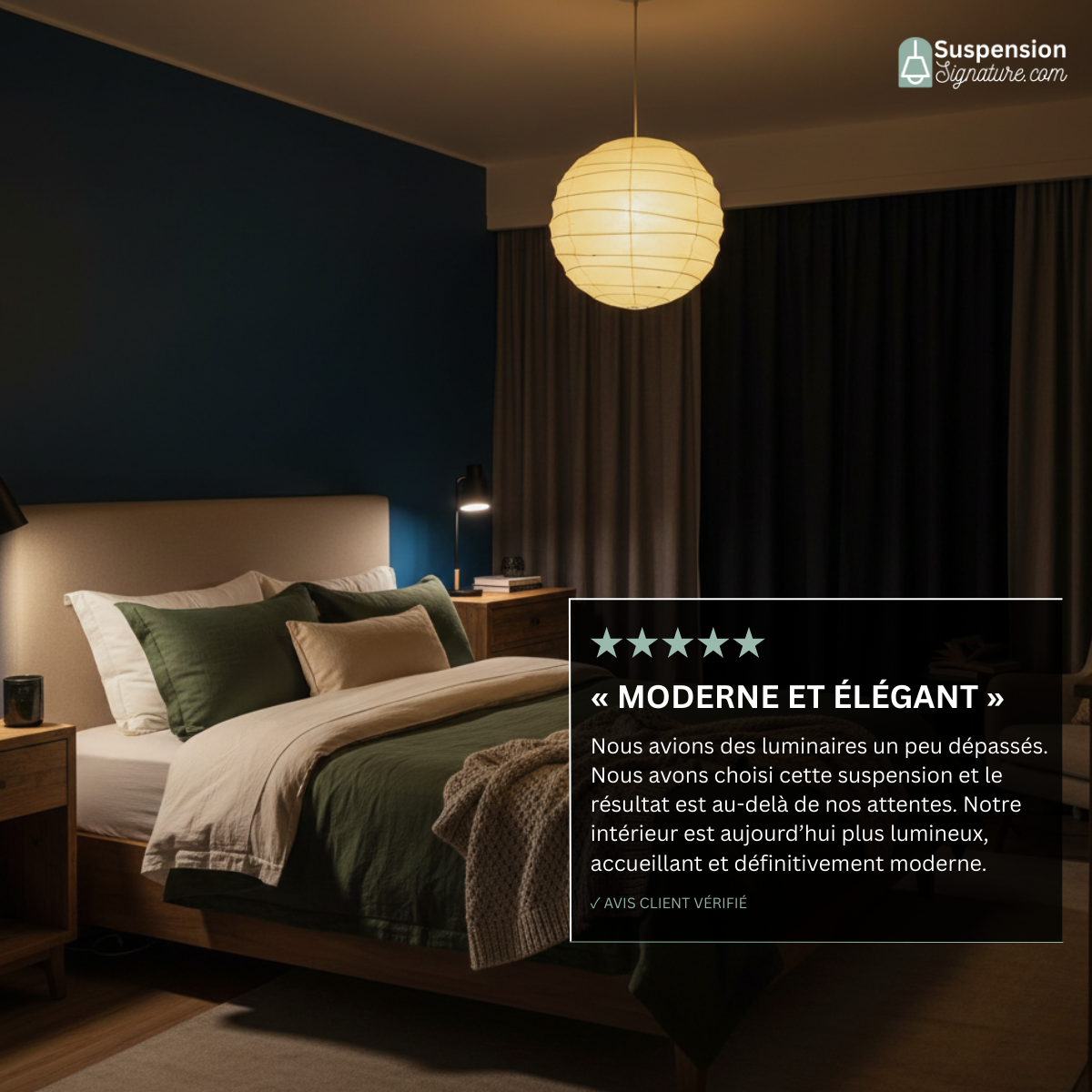 Nos suspensions offrent une luminosité équilibrée, adaptée aux pièces de vie comme le salon, la chambre ou la cuisine. La majorité de nos modèles sont compatibles avec les ampoules LED E27, vous permettant de choisir l’intensité et la teinte de lumière selon votre ambiance préférée.