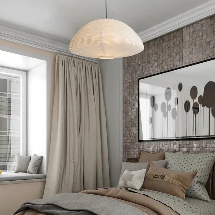 Alliant légèreté et modernité, cette suspension en papier blanc séduit par sa forme de globe aplatie et son design épuré. Son allure simple mais élégante diffuse une lumière douce et harmonieuse, idéale pour instaurer une atmosphère chaleureuse et apaisante dans le salon, la chambre ou le bureau.