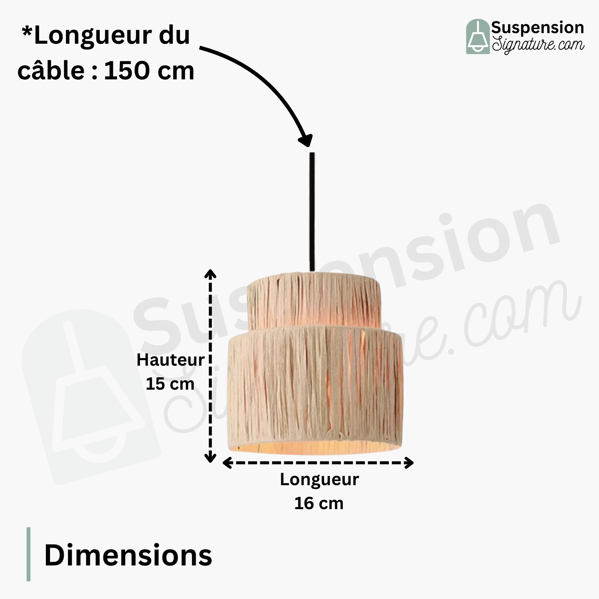 Grâce à son câble de 150 cm ajustable, elle s’adapte facilement à différents espaces et hauteurs sous plafond. Parfaite pour le salon ou la chambre, elle apporte une touche d’authenticité subtile et une ambiance chaleureuse.