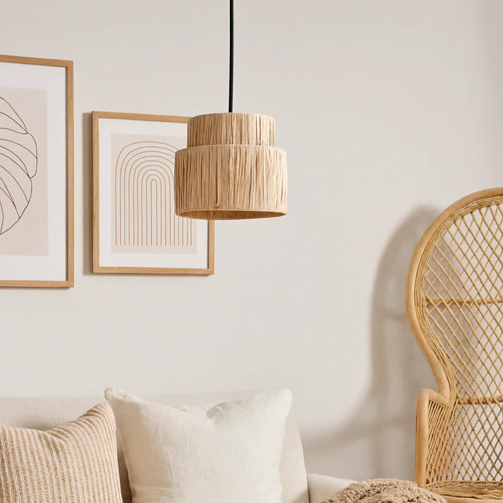 Discrète et raffinée, cette suspension moderne en rotin compacte double marie nature et modernité avec une élégance naturelle. Sa teinte beige claire et sa forme minimaliste s’intègrent harmonieusement à tout intérieur contemporain, tout en diffusant une lumière douce et apaisante.