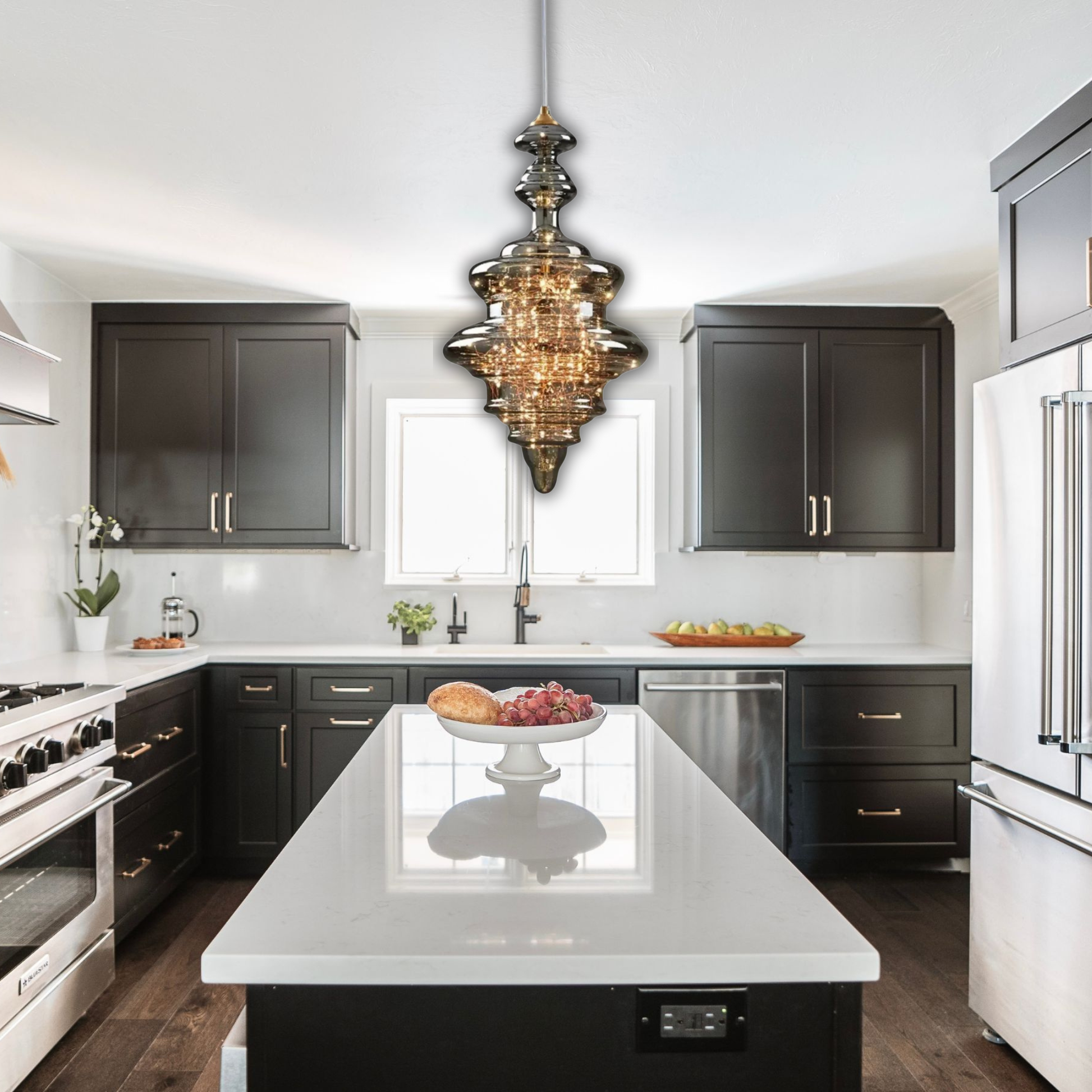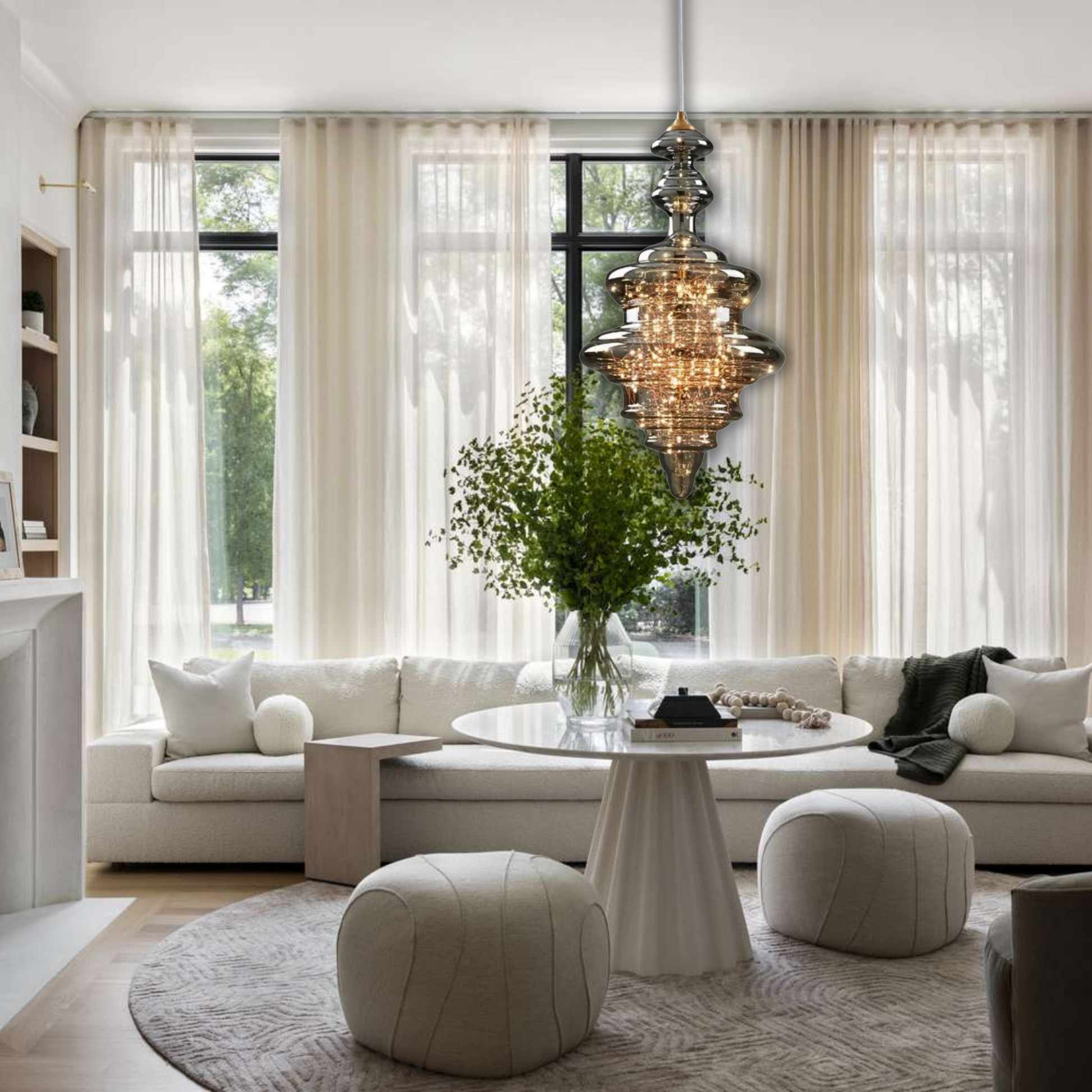 Avec son design élancé et majestueux, cette suspension devient la pièce centrale de votre décoration, idéale pour illuminer un salon, une entrée ou une cuisine avec une élégance contemporaine.