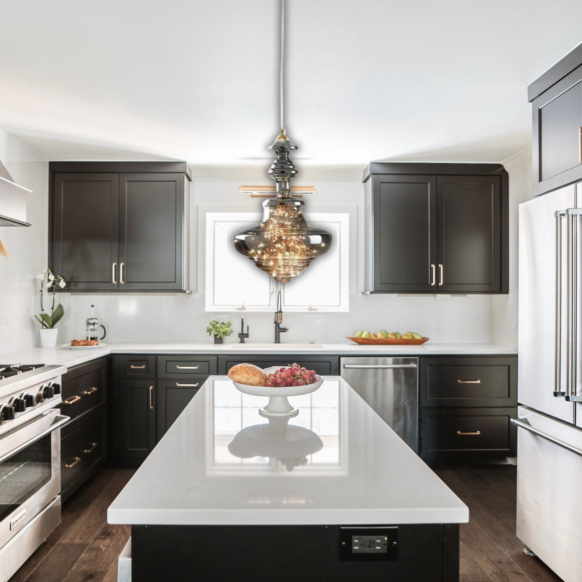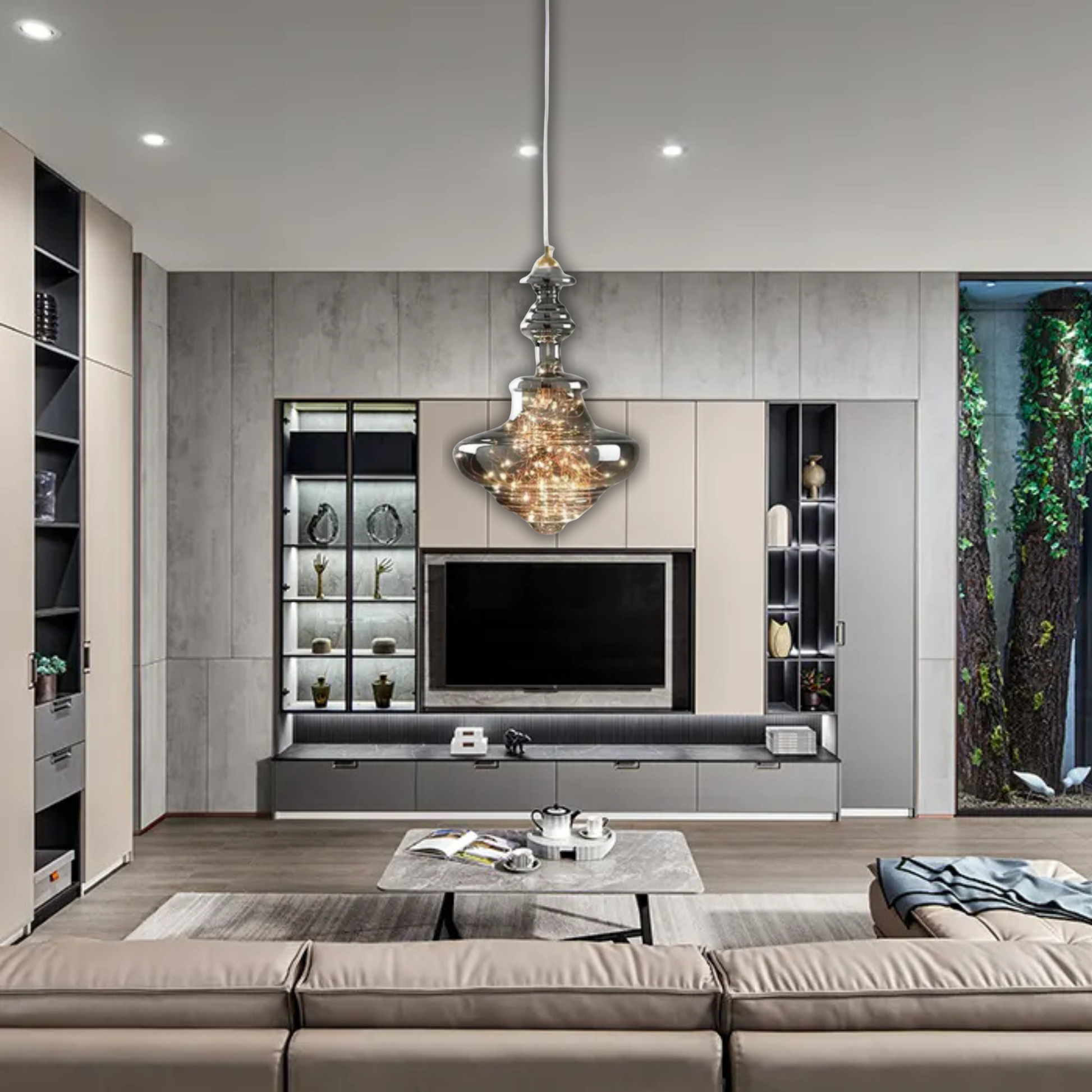 Le filament doré orné de mini LEDs apporte une note art déco contemporaine, transformant cette suspension en véritable objet décoratif idéal pour le salon, l’entrée ou la cuisine.