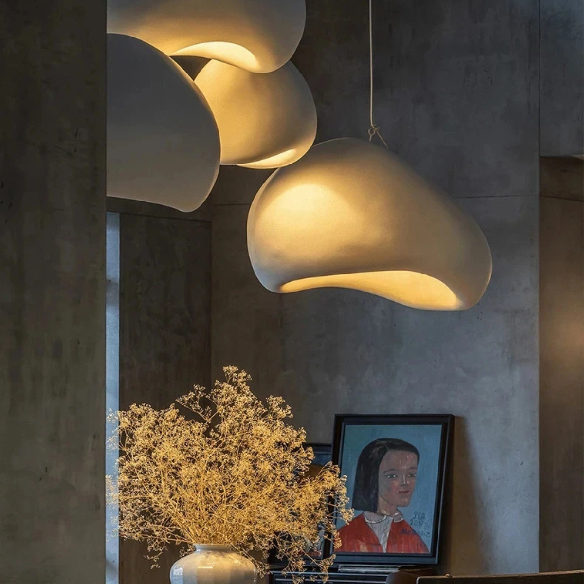 Naturelle et épurée, cette suspension cloche en terre cuite incarne la sobriété du design scandinave avec une touche artisanale. Ses nuances blanches ou grises et sa base asymétrique apportent une élégance subtile, diffusant une lumière douce idéale pour un salon, une cuisine ou un couloir au style minimaliste et chaleureux.